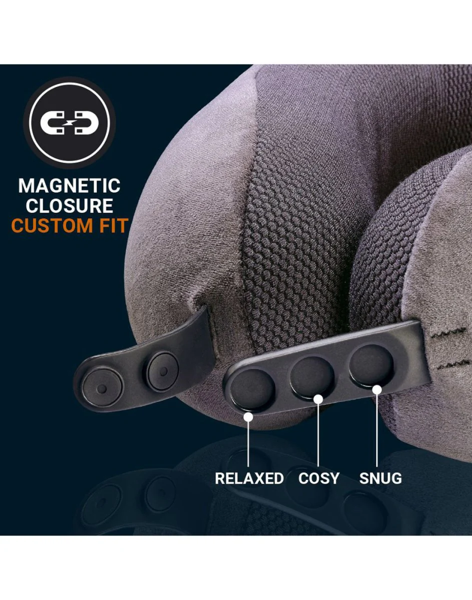You haven’t experienced travel comfort until you’ve experienced The Ultimate 3.0. A feature-rich memory foam pillow where form and function combine. A clever magnetic closure allows you to choose from three comfort settings – relaxed, cosy, snug. Feel the gentle embrace of uber-soft breathable bamboo fabric that stays cool against your face, all wrapped up in a luxurious buttery velour fabric that is so inviting to the touch. A generous side pocket keeps valuables close-to-hand for reassuring peace of mind and the cover is washable too to keep it pristine. Deluxe memory foam gently conforms to each of your individual contours, while the subtle, rear, non-slip grip secures the pillow and its unique design adds to the rich aesthetic. There’s a reason it’s called The Ultimate…